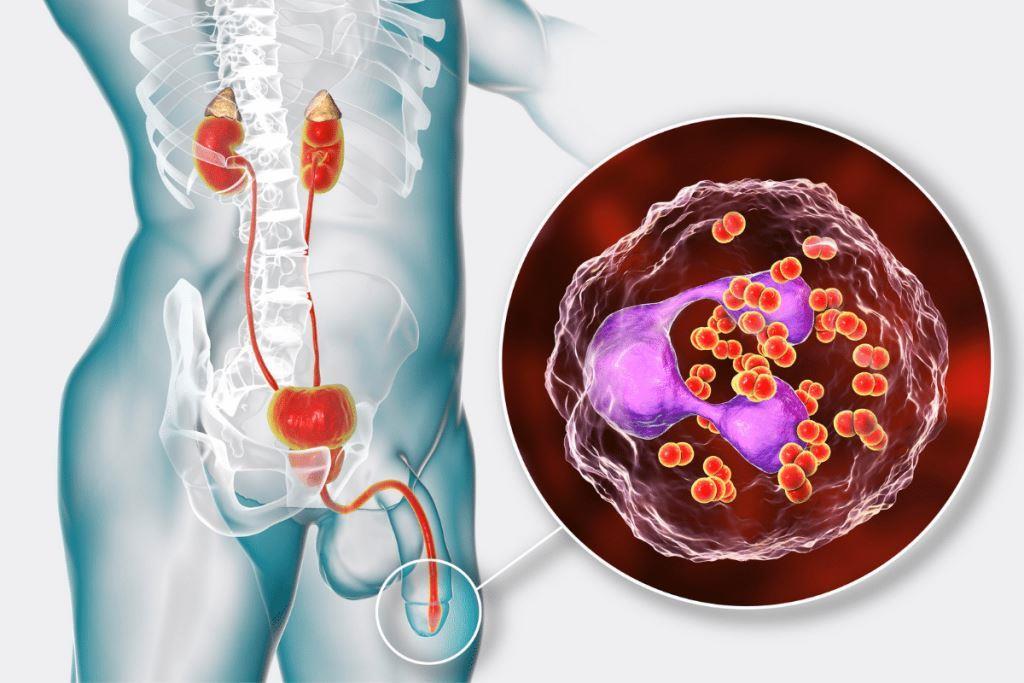 Disebabkan oleh Neisseria gonorrhoeae. Menimbulkan nyeri dan rasa terbakar saat buang air kecil serta keluarnya cairan berwarna kuning atau hijau dari organ kelamin.